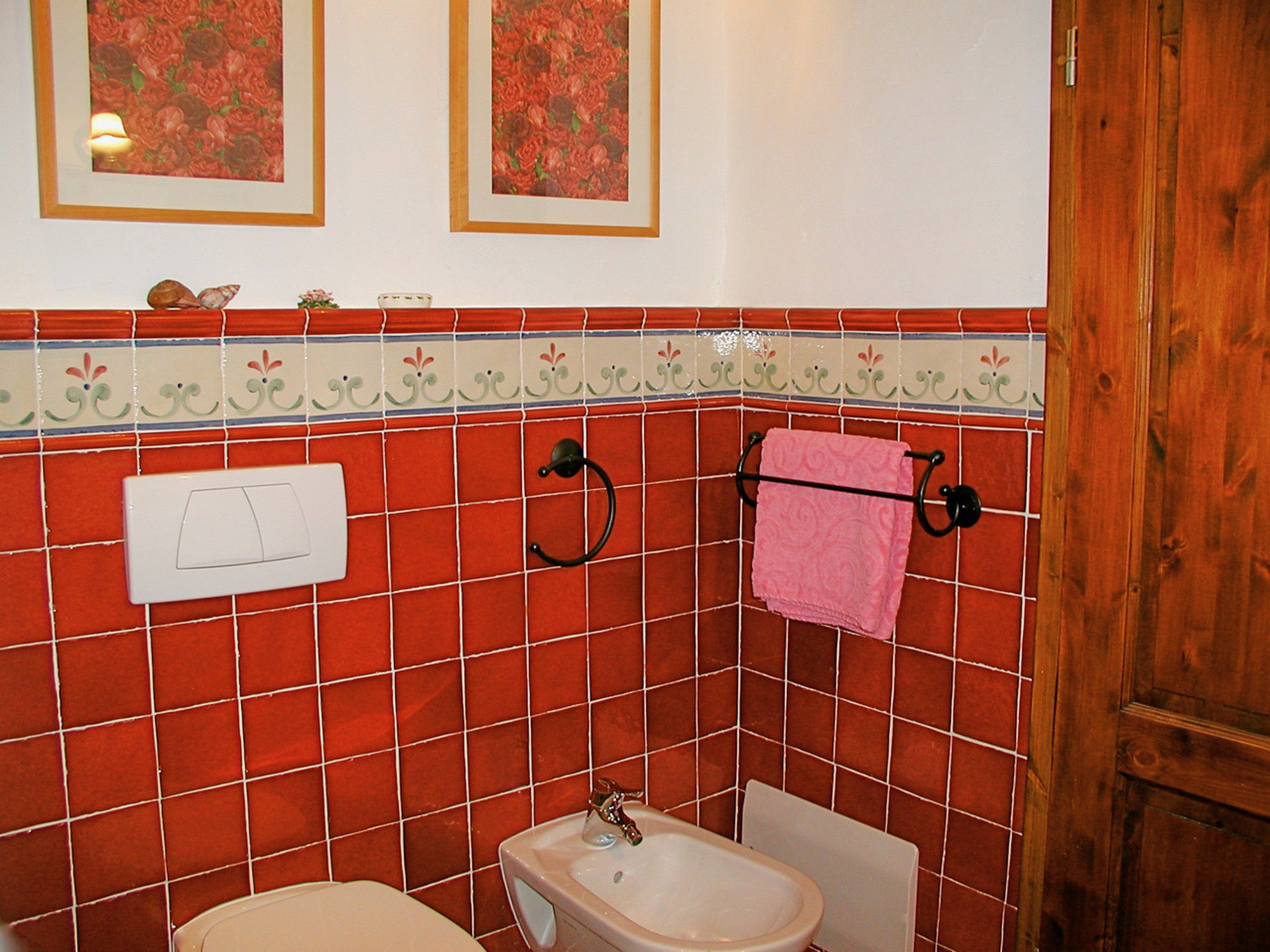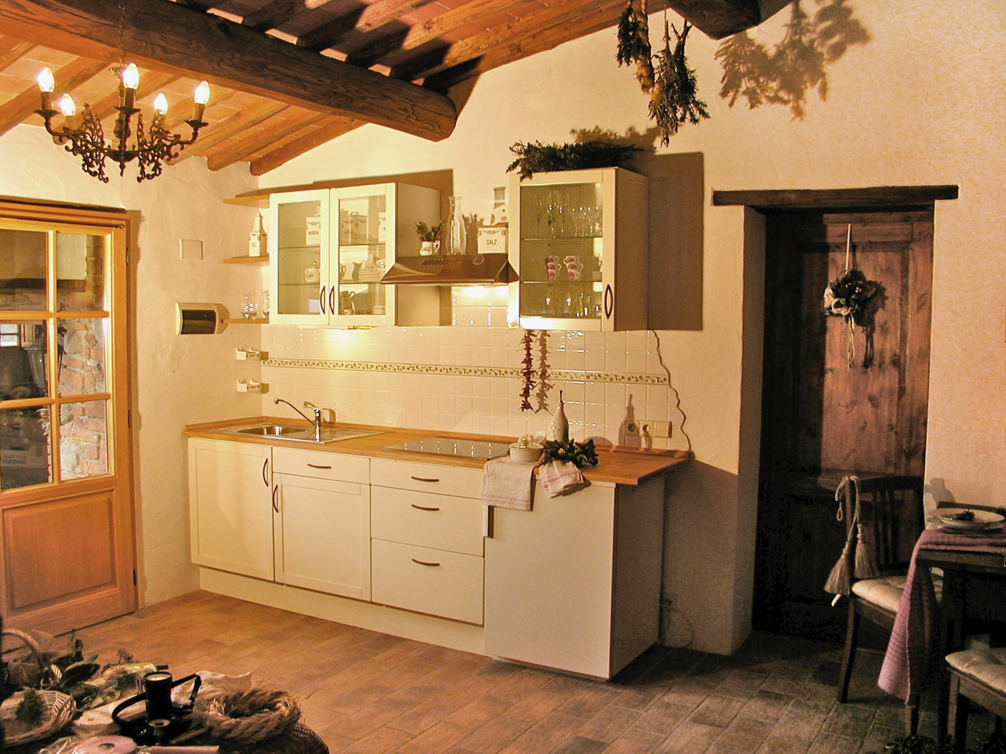 Im 1. Stock gelegen, umfasst sie einen gemütlichen Wohnbereich, eine voll ausgestattete Küche und ein Bad mit handgemalten Fliesen.