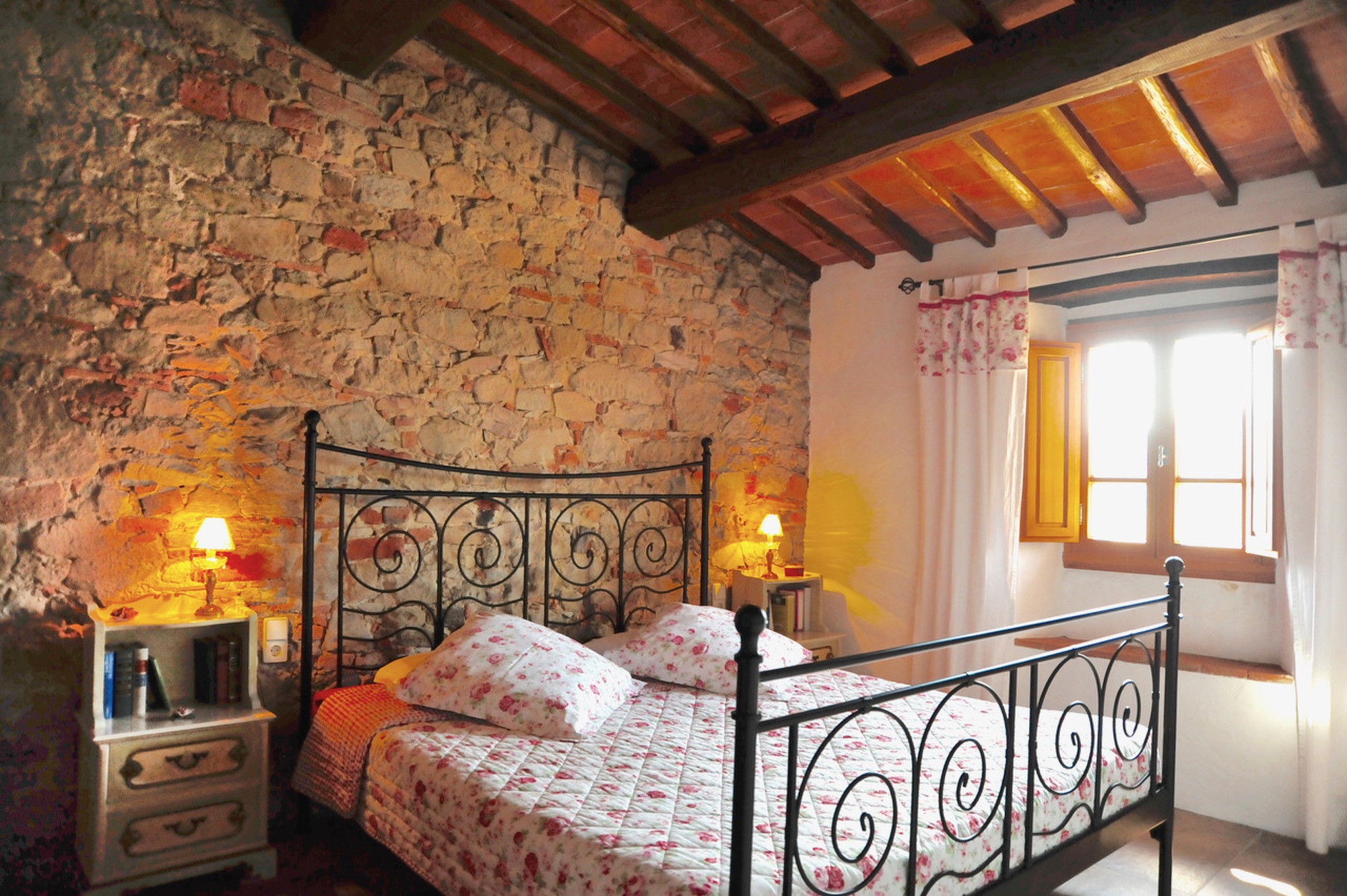 Die toskanische Ferienwohnung Roseto bietet auf 36 m² einen romantischen Rückzugsort für zwei Personen mit Blick auf die Chiantiberge und das Arnotal.