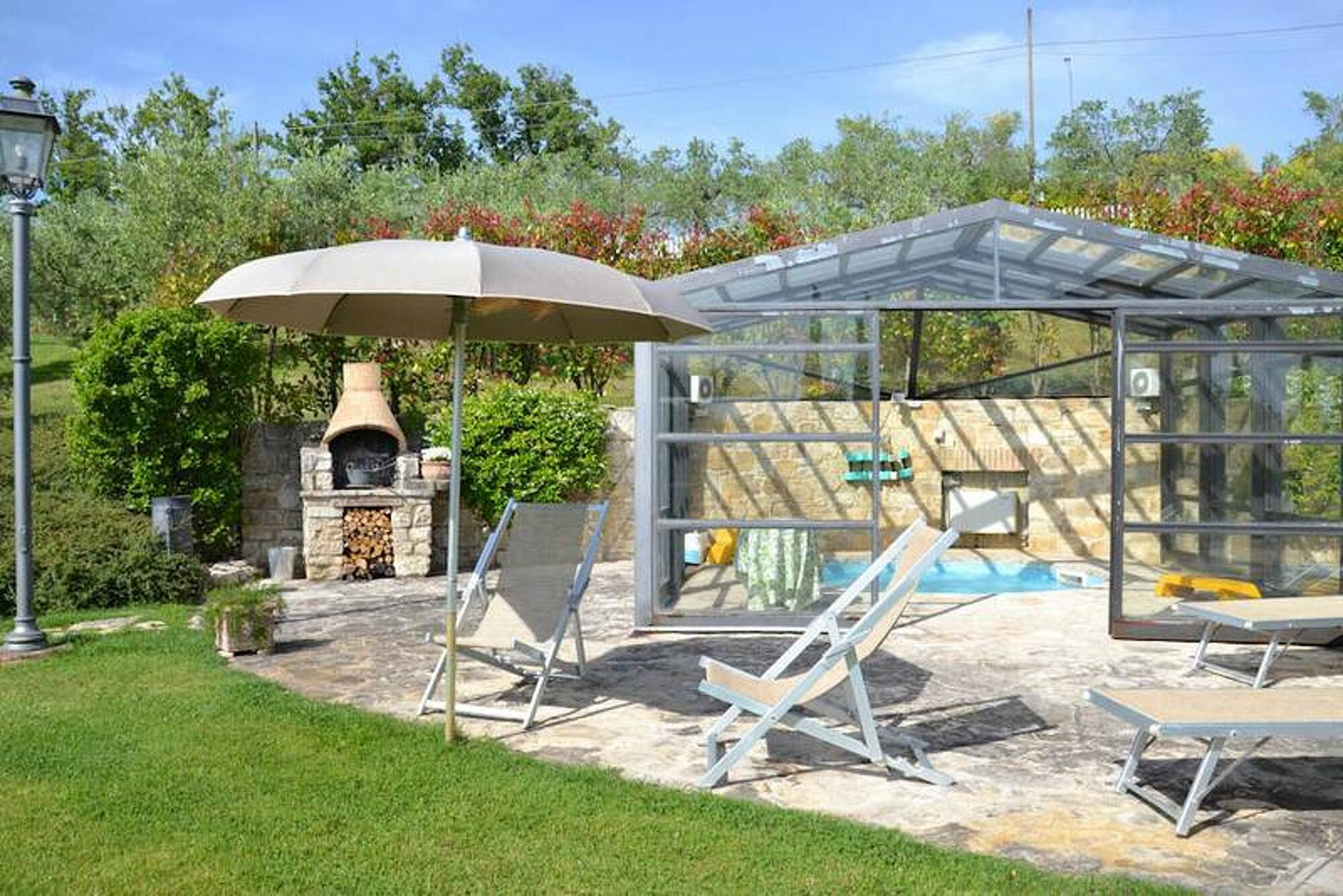 Mit einem weitläufigen Garten, Grill und einer überdachten, beheizbaren Whirlwanne im Winter ist dies der perfekte Rückzugsort. Genießt die Ruhe und den Komfort in dieser idyllischen Umgebung, umgeben von 1000 Olivenbäumen