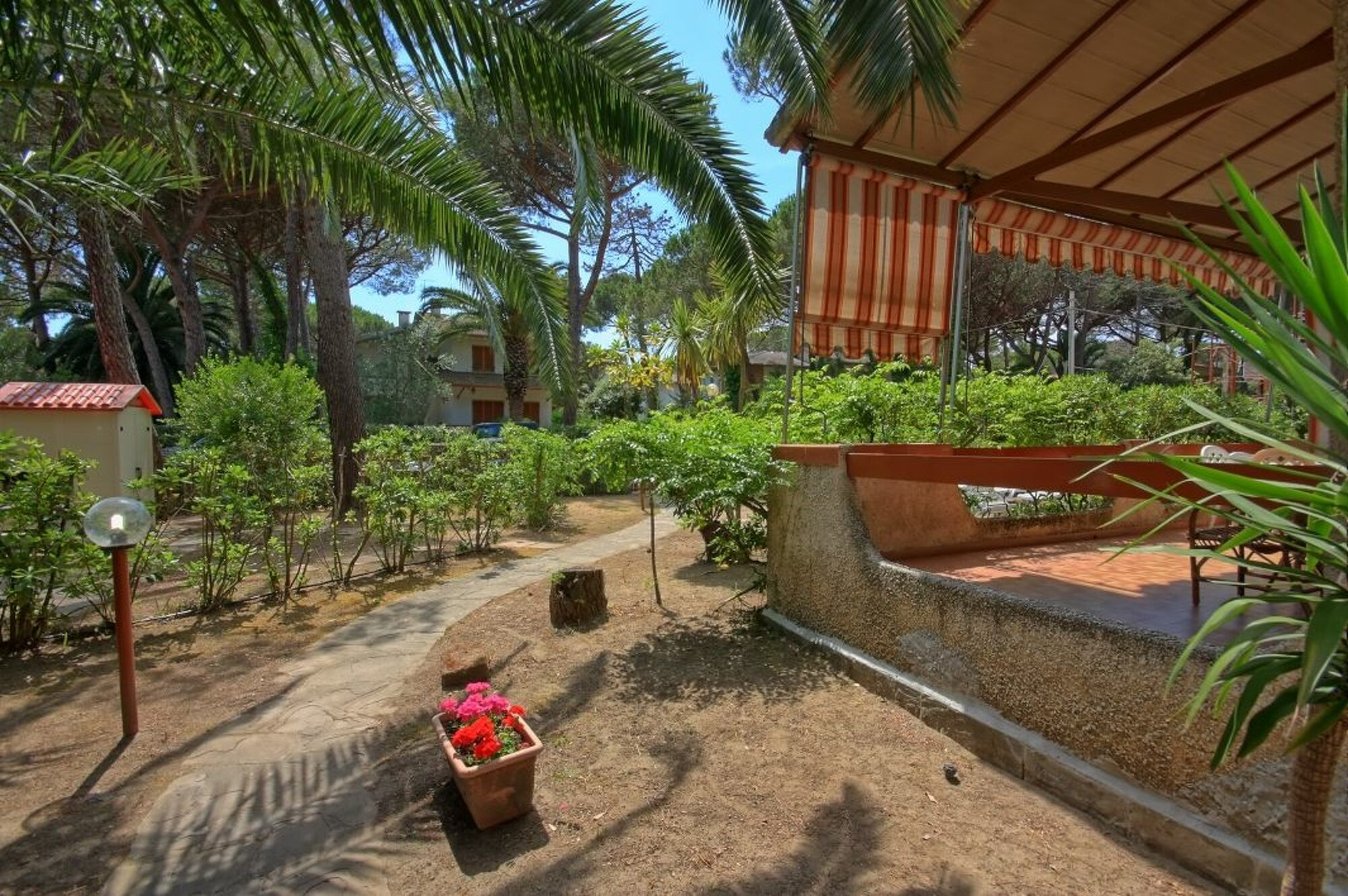 Umgeben von Oleander und Pinien bietet das zweistöckige Haus einen großen Garten und eine einladende Terrasse für unvergessliche Mahlzeiten im Freien.