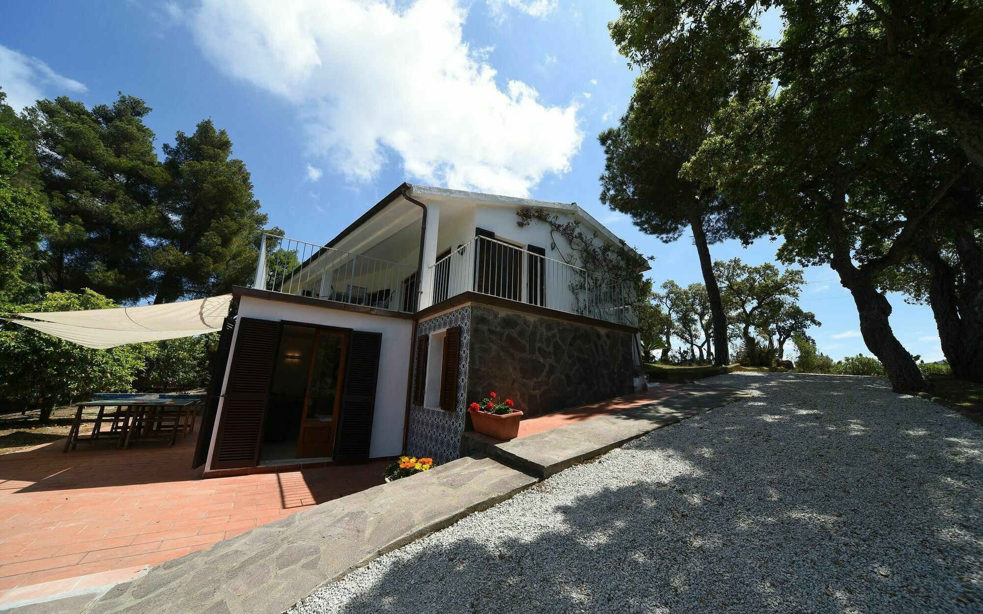 Die Villa Alexa auf Elba bietet einen perfekten Urlaubsort mit herrlichem Meerblick, umgeben von einem weitläufigen Park mit Schatten von Korkeichen und Palmen. Mit 200 m² Wohnfläche, drei Schlafzimmern (bis zu 9 Personen) und drei Bädern, ist sie ideal für Familien.